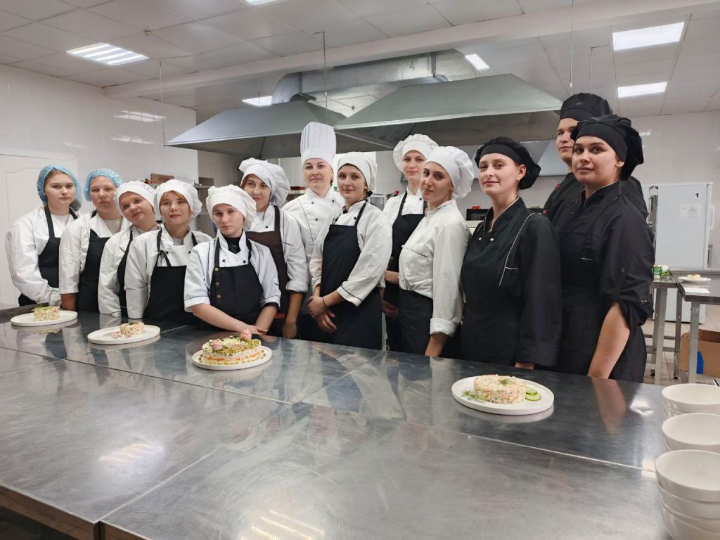 Студенты групп №№ 218, 222, 226, 230, которые обучаются профессии «повар-кондитер», приняли участие в кулинарном поединке. Каждая из команд приготовила свою версию популярного блюда — салата «Оливье».