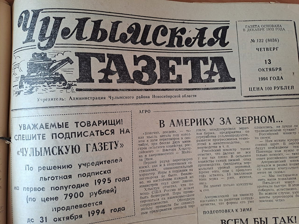 Октябрь 1994 года. Развитие производства замедляется, а рост цен, напротив, набирает обороты. Жители Чулымского района стараются хоть как-то развивать свою территорию
