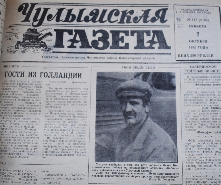 «Мы уже сообщали о том, что фото водителя Ивана Константиновича Гейера из акционерного общества «Кабинетное» публиковалось в «Советской Сибири».