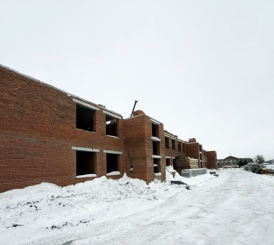 Сегодня строители уже завершают кирпичную кладку второго этажа, монтируют плиты перекрытия, завезены деревянные конструкции для обустройства кровли, занимаются подключением инженерных коммуникаций.