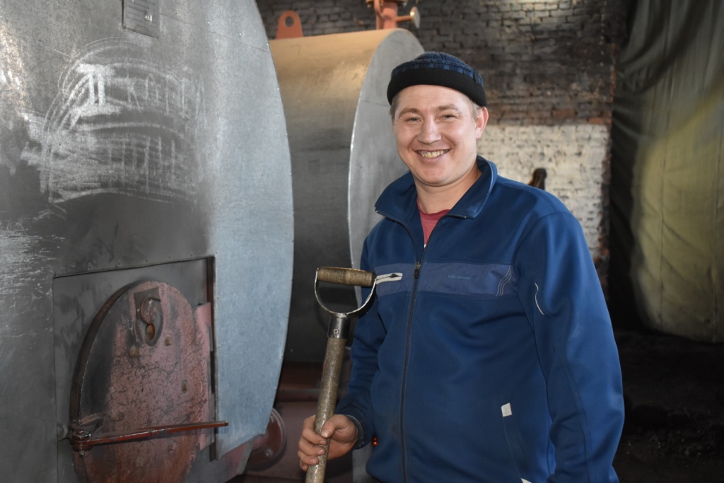 Сегодня дежурит оператор котельной установки Вадим Константинов (на фото), он следит, чтобы ни один из двух котлов не потух, при необходимости подбрасывает в топку уголь лопатой. Молодой человек работает здесь второй сезон. Работа не из лёгких, признаётся он, но для людей нужная. Уголь завозят через день по десять тонн и больше. А к новогодним каникулам нужно будет сделать запасы, чтобы в праздники жители не мёрзли.