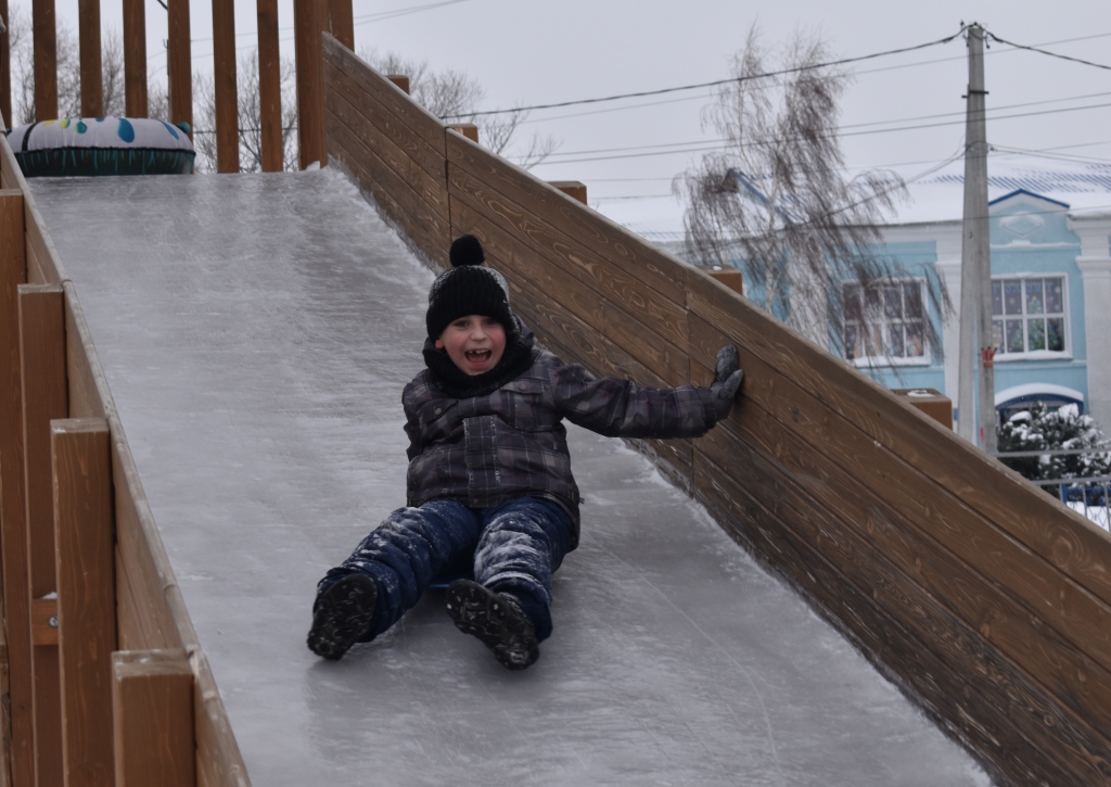 Снежные фигуры Деда Мороза и Снегурочки уже вырезаны и раскрашены. В этом году в городе целых три горки: для самых маленьких — в виде домика, на одной стене которого, разместили символ года — красивую огненную лошадь. Еще одна горка, побольше — для тех, кому уже не очень интересно скатываться с несерьезной высоты. Ну и высокая деревянная горка — любимица детворы. Появилась она в нашем городе в прошлом году и быстро обрела популярность. Ни один ребенок не проходит мимо нее, не скатившись, даже если торопится в школу.